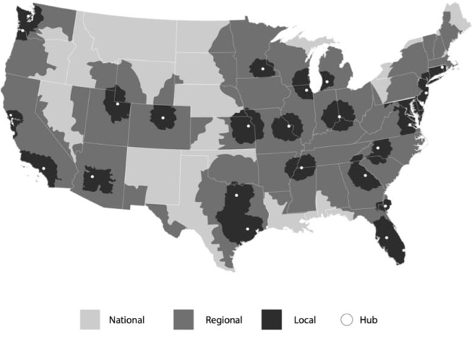 Local, Regional, & National Delivery Zones
