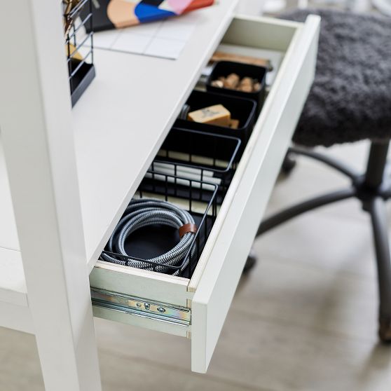 - All drawers feature smooth metal drawer glides.