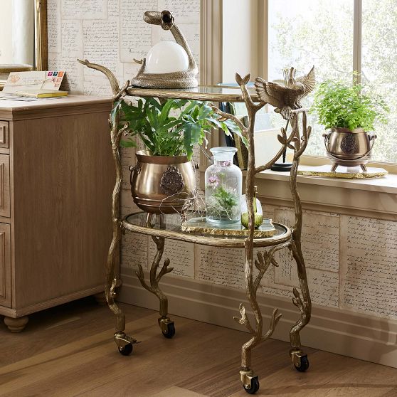- Features a hand applied, gold finish.