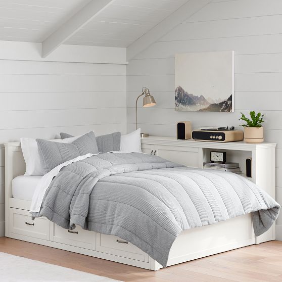 Make the most of your space. Our Hampton set’s clean, sharp look boasts plenty of storage for books and daily essentials. A bed, lounge spot, organizational destination and more combine to create your best room yet.