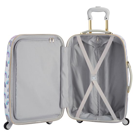 Oh, the places you'll go! From sleepovers to traveling to new cities, bring this standard-sized luggage piece on any adventure. Designed with in-line wheels and a durable outer shell, this suitcase will withstand years of wear and tear. Its roomy interior lets you safely take your clothes and souvenirs anywhere! Stylish and sturdy, let this be your traveling companion.