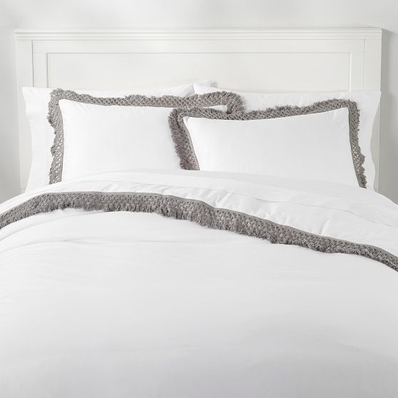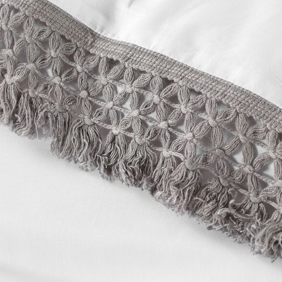 Give your sleep space an easy, chic update with the Crochet Trim Duvet Cover + Sham. It features crochet tassels on the border for a relaxed, DIY vibe. It's made from soft pure cotton percale so it keeps you cool when you snooze.