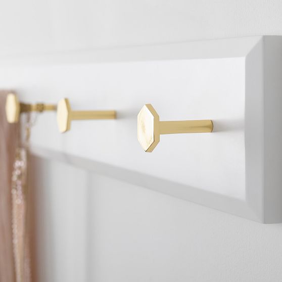 Keep your stuff off the floor and your walls looking polished with our Hexagon Geo Wall Hooks. Hang your clothes, bags, hats or jewelry on five gilded hexagon-shaped hooks that boasts a luxe look.