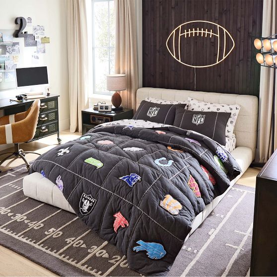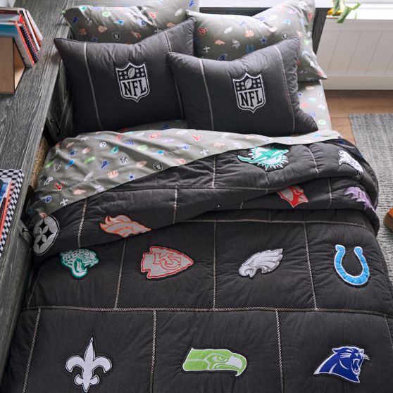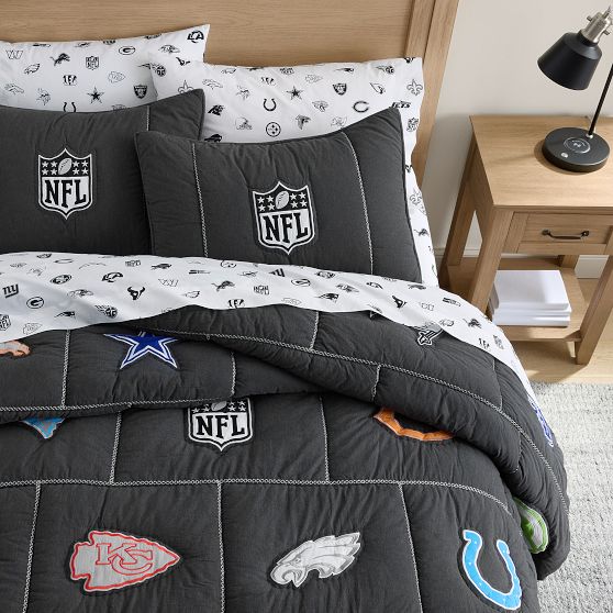 Featuring your favorite AFC and NFC football team logos, this ultra-soft NFL quilt and sham make it easy to sleep like a champ. Made with pure cotton to keep you comfy and warm.