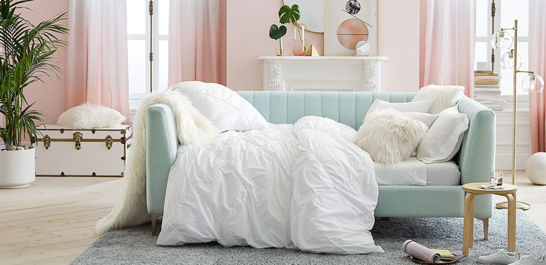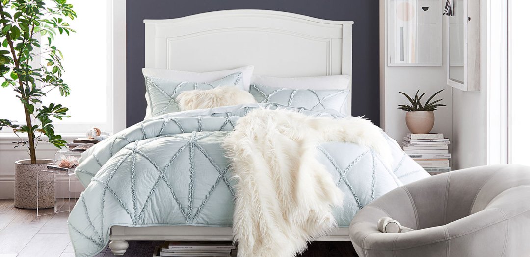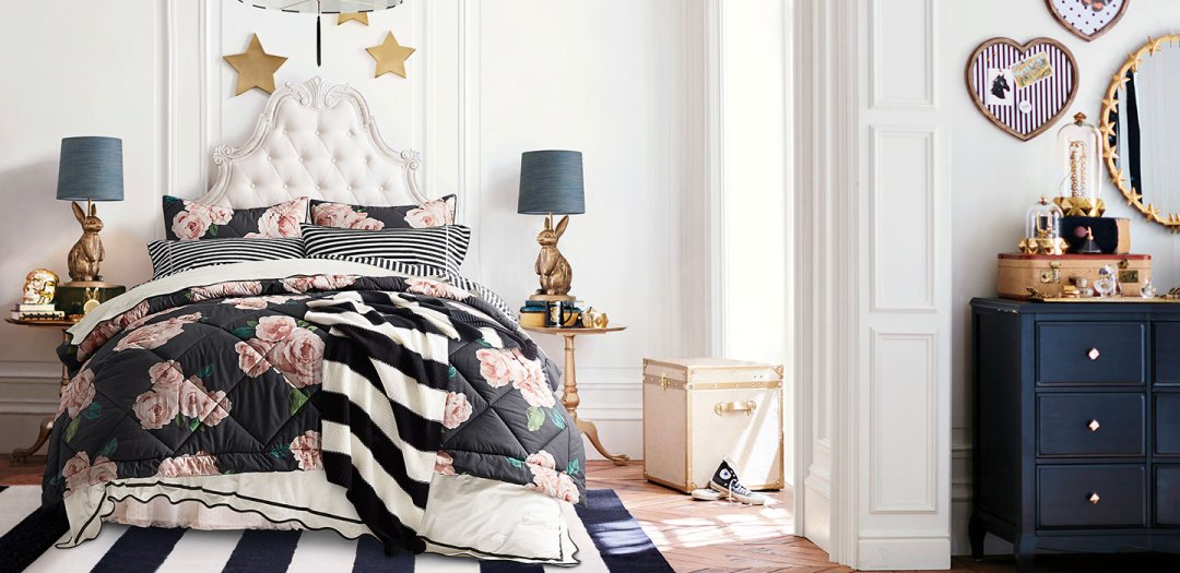Floral prints, bold stripes and tufted textures create a chic space. See something you like? Click on the tags to shop the room.