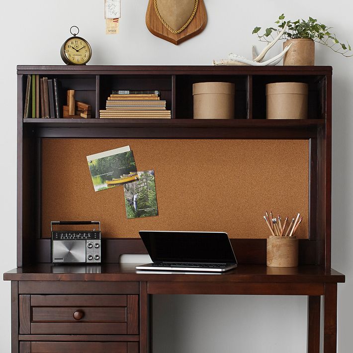 Maximize your space with our compact Beadboard Space-Saving Hutch . Efficient and functional, our roomy hutch includes four cubbies and a cork board surface with a cord cutout for laptops and electronics.