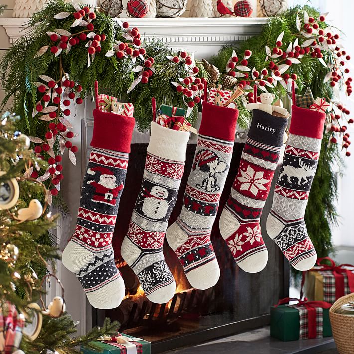 Happy cozy season! Capturing the look of vintage knits, the classic patterns of our Fair Isle-inspired stockings are made festive with seasonal icons and accents of red – perfect for mixing, matching, and merry-making.