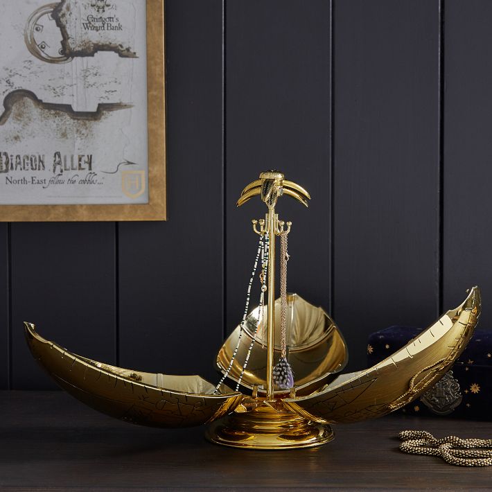 Inspired by the First Task of the Triwizard™ Tournament, our Harry Potter Golden Egg Jewelry Box possesses true, wizarding style. Plus, it keeps your most valuable trinkets like your favorite necklaces, bracelets, rings and other precious gems safe.