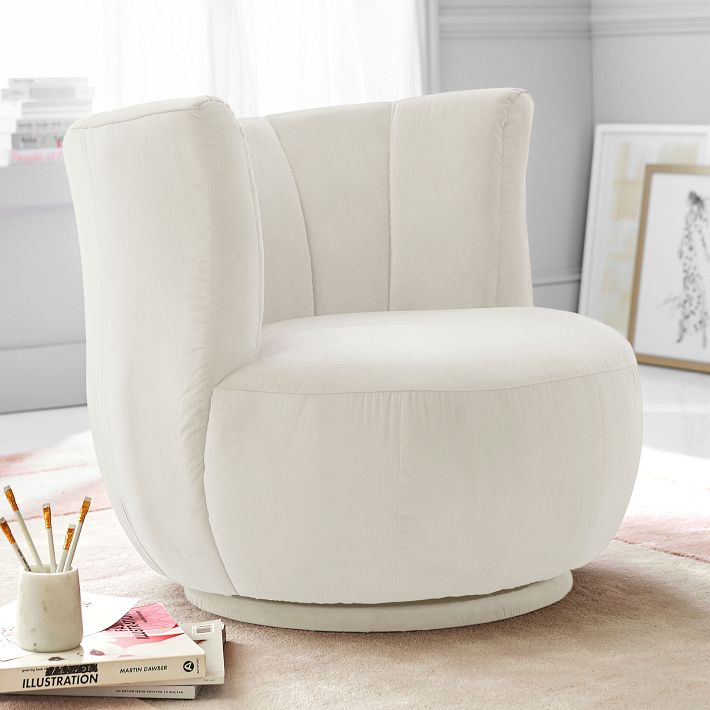 Inspired by the graceful lines of a tulip, this luxurious swivel lounge chair will add glamour and fun to any room. It’s made of Everyday Velvet that's easy to spot clean and water repellent, for a durable and beautiful finish. Designed in collaboration with renowned fashion designer Monique Lhuillier.