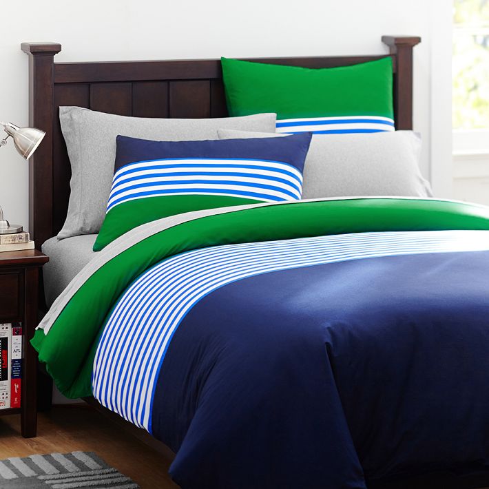 Nantucket Stripe Duvet Cover, Twin/Twin XL, Navy/Green | No Longer Available |