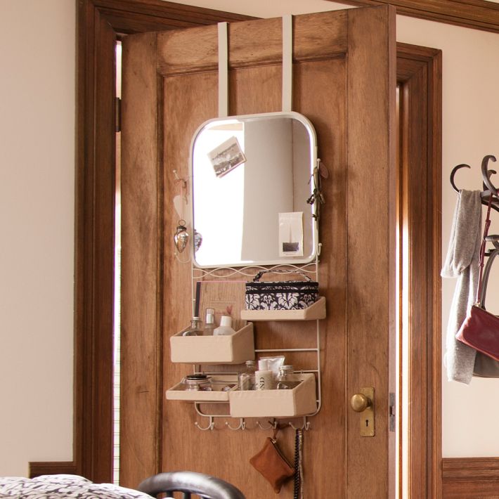 Looking good has never been easier. This versatile get-ready station has a beveled mirror, plus hooks for jewelry and scarves, and four bins for hair accessories and other necessities.