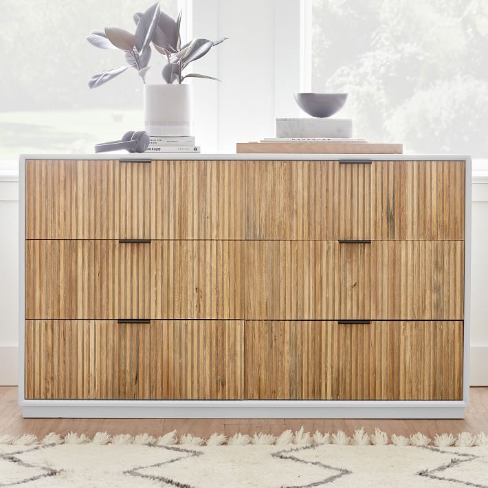 The Quinn 6-Drawer Dresser brings contemporary style to your space with its fluted design. It features six roomy drawers crafted from mahogany wood with crisp white side panels. The perfect storage solution, its sleek style complements any decor. Designed in collaboration with West Elm.