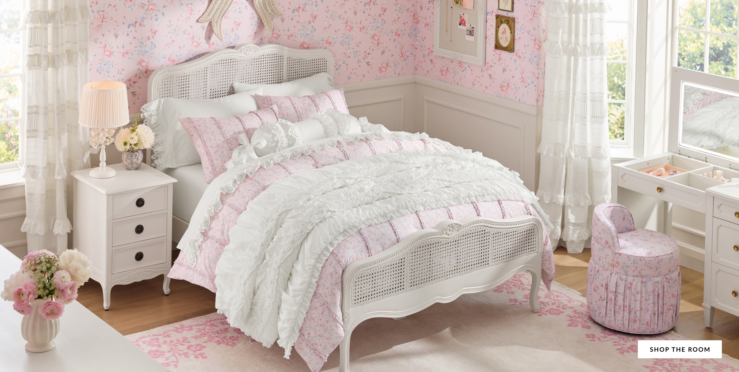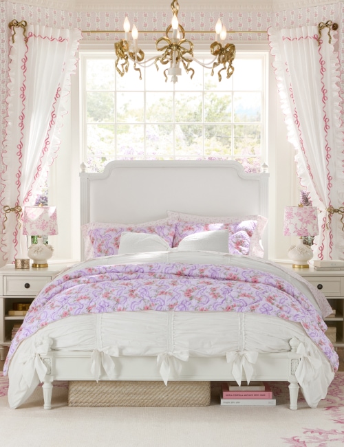 - Bedding & Textiles: Find everything from plush comforters and quilts to sheet sets, shams, and decorative pillows in signature LoveShackFancy patterns and colors.