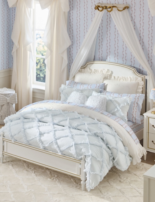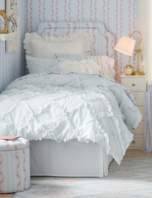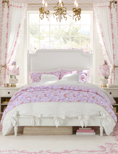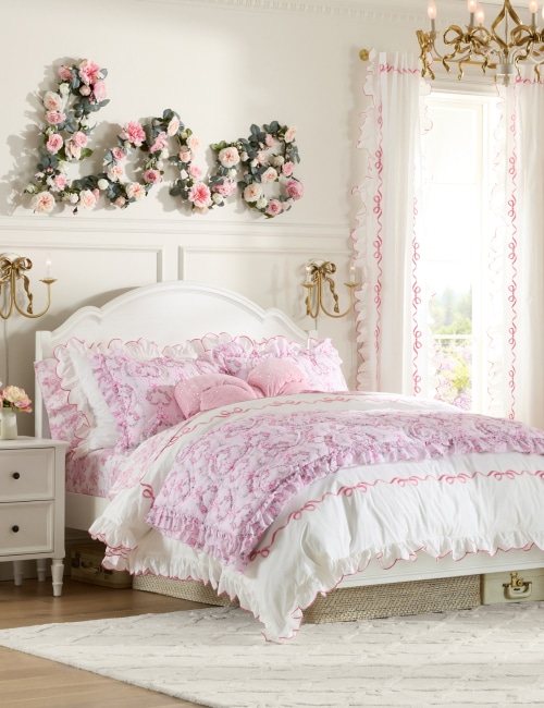 • Bedding & Textiles: Find everything from plush comforters and quilts to sheet sets, shams, and decorative pillows in signature LoveShackFancy patterns and colors.