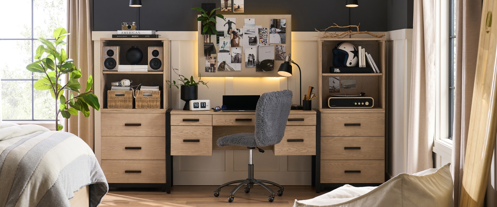 Level up your study zone with space-smart desks made for teen bedrooms and college dorms. From compact workstations to full desk systems with built-in storage, our teen computer desks help you stay organized, inspired, and always on task.